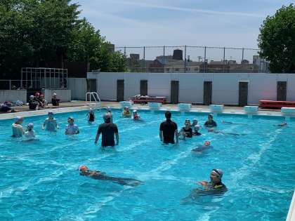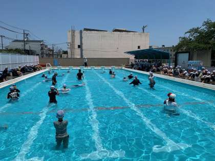 子どもたちは、着衣のまま泳ぐことで、水着で泳ぐ時との違いを体感することができました。