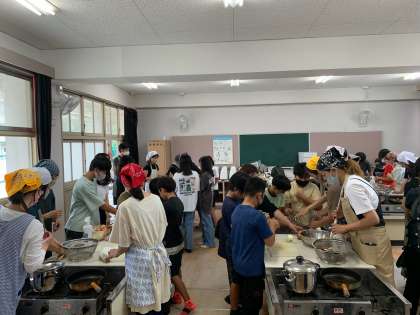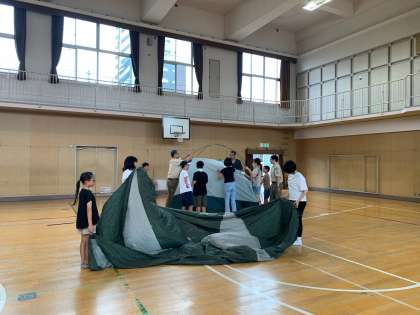 5・6年生の児童が参加して、カレー作りやテント組立をしました。