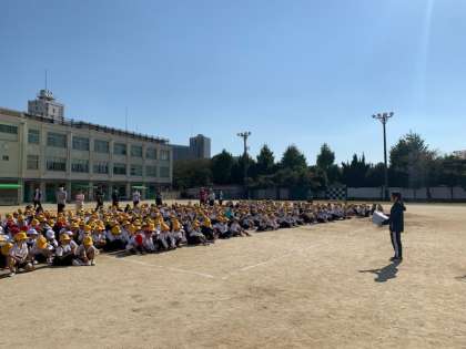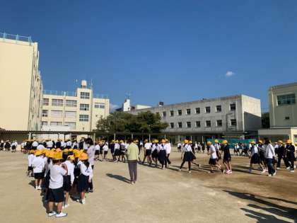まず、地震が発生したという想定で、放送を聞いてから運動場に避難しました。その後、津波が発生するかもしれないという想定で、校舎の3階に避難しました。どの児童も真剣に取り組んでいて、放送や指示をよく聞いて避難することができました。