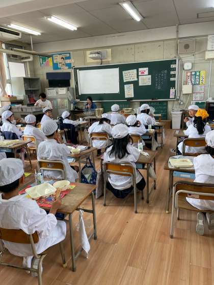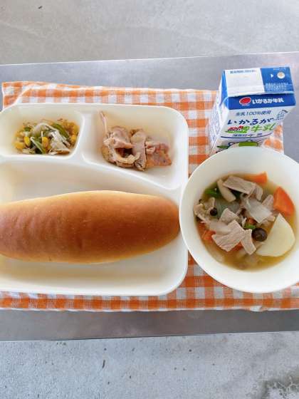 今日の給食も緑のグループの食べ物がたくさん入っていました。