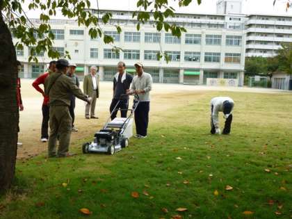 地域芝生化実行委員のみなさんが中心となり、芝生広場の芝刈りを行ってくれました。