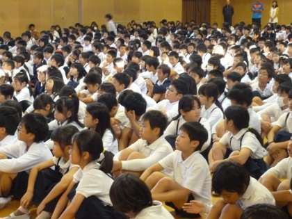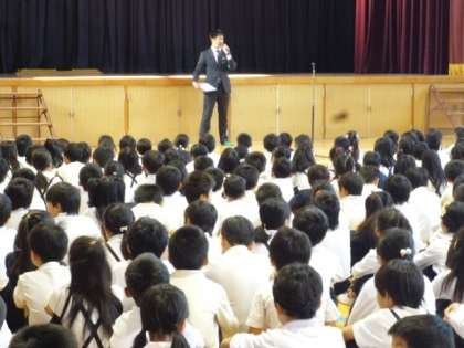 8月に寝屋川で起こった中学生殺害事件を受け、自分たちの命を守ることの大切さを「5つの約束」としてお話ししてくださいました。
