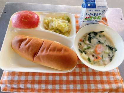 りんごは、冬の寒さが厳しい地方でよく育つ果物です。生で食べる他にも、缶づめやジャムなどに加工するものもあります。りんごには、「ふじ」「つがる」「大林」「むつ」など、いろいろな種類があります。今日の給食は、「ふじ」でした。今日も大好評で完食していました♪