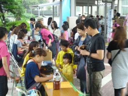 台風接近の大雨の中にも関わらず、たくさんの人で盛況に実施された「豊里フェスティバル」の様子です。
