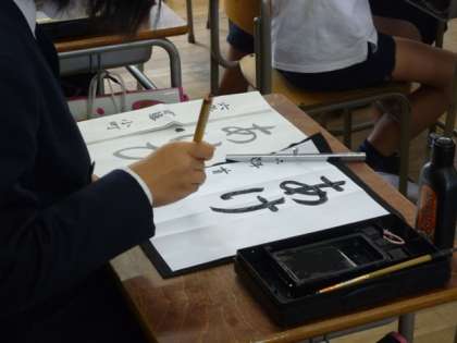 3時間目、6年1組(田中先生)、書写の授業風景です。