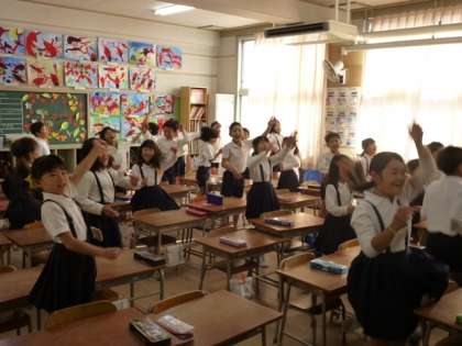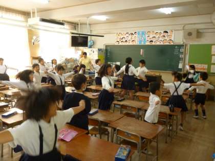 朝一番、校長室で仕事をしていると、上の階からドタバタ、ドタバタとうるさい足音(笑)と子ども達の元気な声。