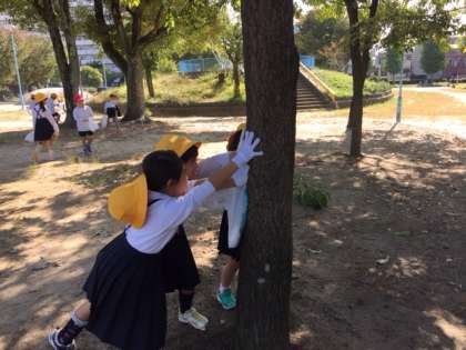 夏に続いて2回目の公園たんけんになりますが、子ども達は木々や昆虫の様子などに季節の移り変わりを感じ取っていました。