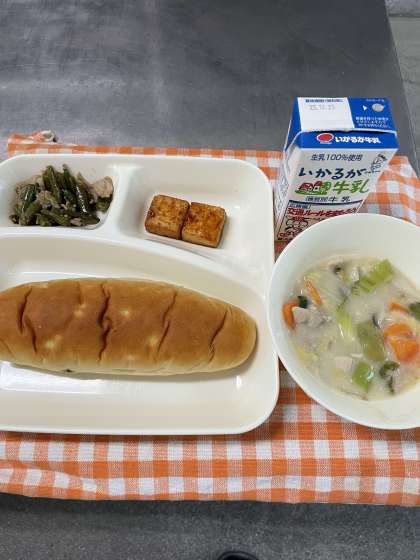 あつあげのピリ辛焼きは、子どもたちに大好評な焼き物です。あつあげを焼き、砂糖、こいくち醤油、豆板醤を合わせて煮、焼いた厚揚げにかけて作ります。