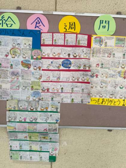 一年生から調理員さんへのメッセージです。みんな給食が大好きというコメントが多かったです。