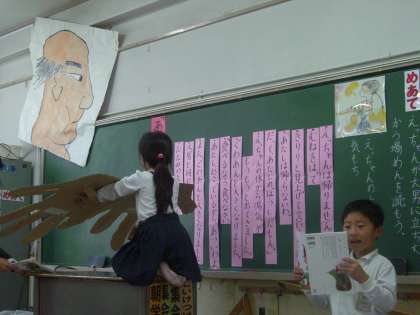 今日は教科書の「名前をみてちょうだい」の話を、音読したり動作で表したりして主人公の気持を想像する授業でした。