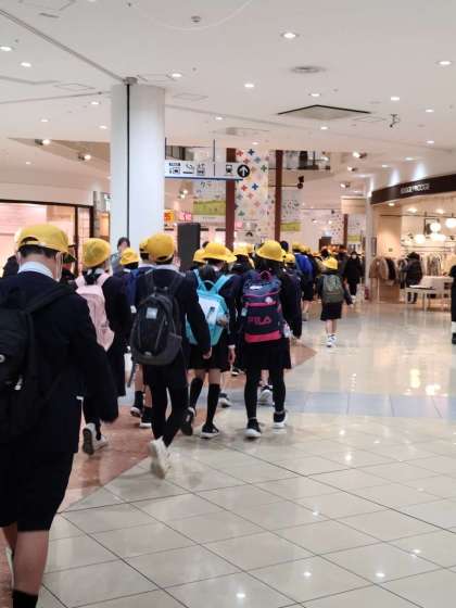 キッザニア甲子園を出発しました。 学校に帰ります。