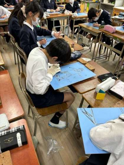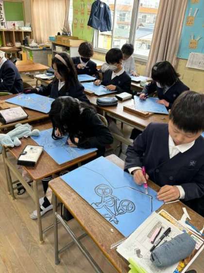 彫刻刀を使う際は、怪我に気をつけて慎重に真剣にホリホリ作業を頑張っていました。