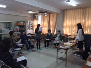 アナウンサーで「ここはぐ保育園」の代表 西村実花先生 をお迎えして、本校で図書ボランティアの中心になっていただいている「えほんばたけ」の皆さんを中心に、効果的な読み聞かせについての講習が行われました。