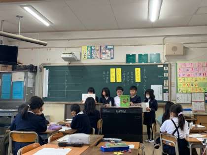 今年度最後の学習参観で、子どもたちは、昔遊びの発表(1年3組)や昔話の紹介の発表(2年1組)をしてよくがんばっていました。