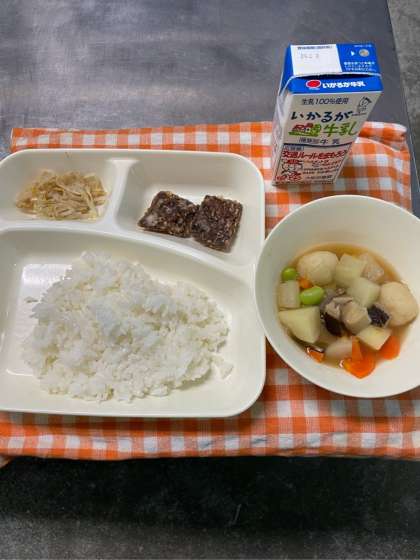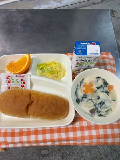 今日は、3センチ×4センチで五ミリの厚さのくじらでした。食べやすく人気がありました。昨日の献立の写真が間違ってました。昨日のクリームシチューも載せておきます。