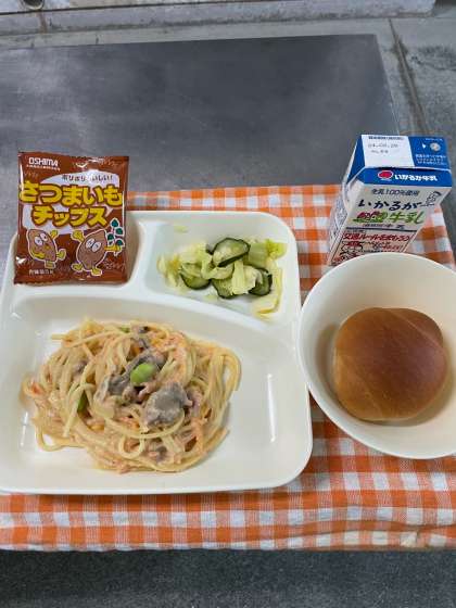 硬めでしたがおいしくて大人気でした。さけのクリームスパゲッティも大好評でした。明日、六年生は小学校最後の献立でチキンカレーライスです。楽しみにしていてくださいね♪