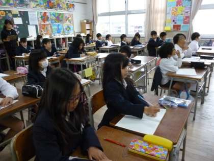 しっかりとした授業案を作成し、管理職を含む複数の教員が授業を見学します。授業が終わった後は、授業に関しての批評・高評です。