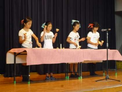 体育館に響き渡るハンドベルの音色、校歌に合わせて踊るポップダンス