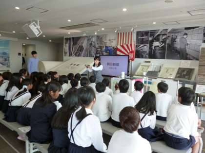 丁寧に説明してもらい、自分たちが普段目にする新聞が、どのような工程で作られているのかをしっかり学び、新聞社で働く人たちの喜びや苦労話しをきかせてもらいました。