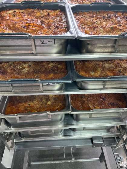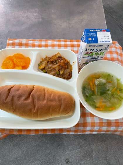 今日の給食のグラタンは、上新粉でとろみをつけ、パン粉(米粉)を使った「じゃがいものミートグラタン」です。