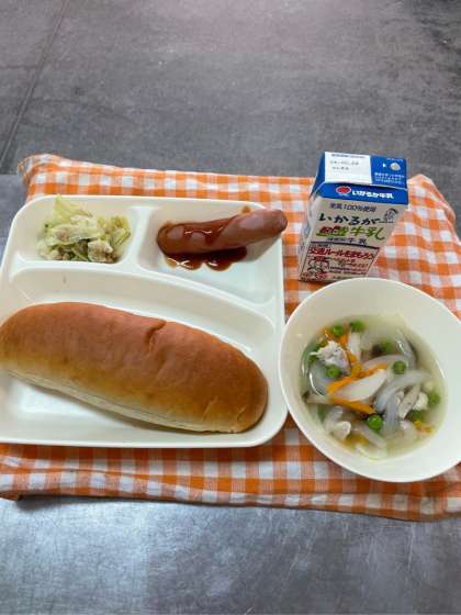 豚や牛のひき肉を使って作られ、太さが20ミリメートルより細いものをいいます。今日の給食では、ゆでたウインナーソーセージにケチャップ味のソースをかけています。子ども達は、パンに挟んで食べている子どももいました。