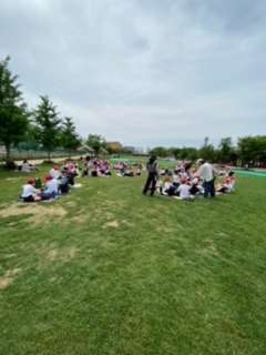 芝生の上で弁当を食べました。 ただいま、地下鉄谷町線に乗って帰っています。 南森町付近です。