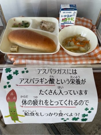 グリーンアスパラガスは、今が旬で国産の生の物を使用していました。疲労回復やスタミナ増強に効果があるアスパラギン酸を多く含んでいます。