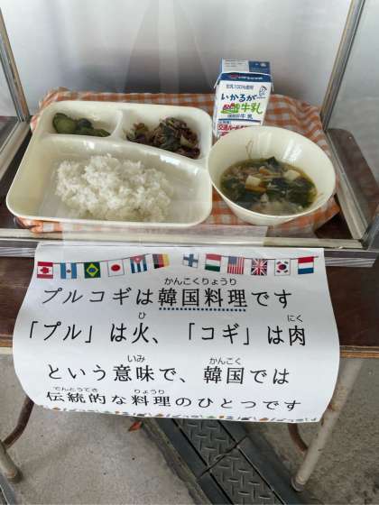 「プルコギ」は、韓国.朝鮮の料理です。「プル」は、「火」、「コギ」は、「肉」という意味で、合わせて「火で焼いた肉」という意味になります。