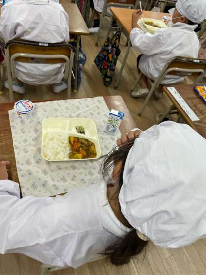 今日の給食時間の様子です。