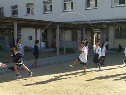 個人技を極めるために練習する子、学級チャレンジの全員とびや8の字跳びにチャレンジする子、それぞれがめあてをもって仲良く楽しく活動していました。