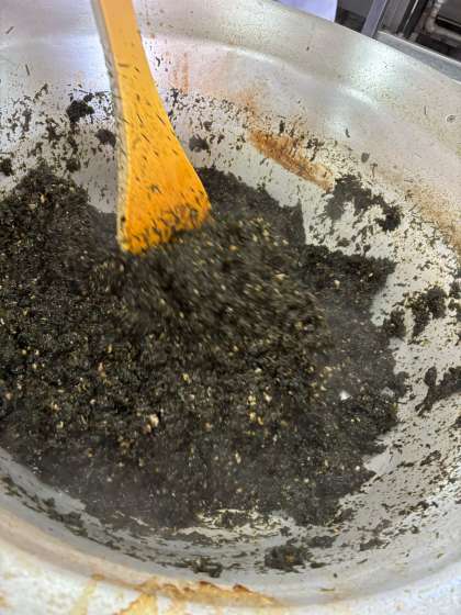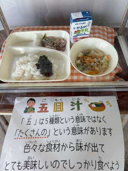 佃煮は、小魚やこんぶ、貝など色々な材料を塩やしょうゆ、砂糖などで煮詰めたものです。今日の給食には、砂糖やしょうゆ、だし、しいだけを煮て、かつおぶしと刻みのりを加えて煮詰めた「のりのつくだ煮」が登場しました。