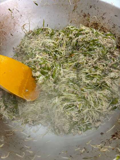 今日は、大根おろし、みりん、うすくちしょうゆを合わせて煮立てたタレを「さごし」にかけて食べました。おろしじょうゆが「おいしい」と大好評でした。