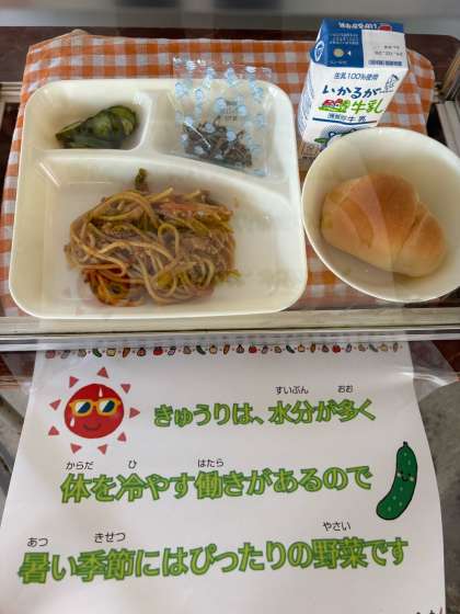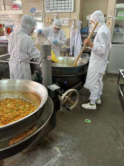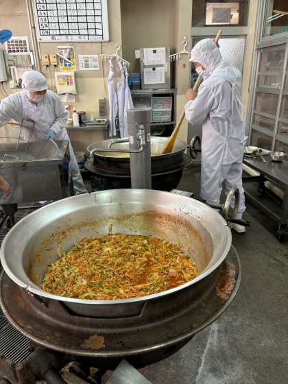 今日は、カレースパゲッティでした。豊里小学校では、2釜で作っています。