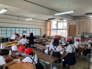 たてわり班の教室に移動して、各クラスのお店のアピール動画を見たり、お店をまわる順番を決めたりしました。