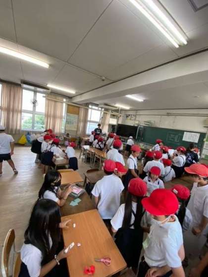 子ども等が考えたお店をたてわり班でまわっています