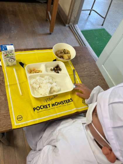今日は、ひじき豆が出ました。一年生は、食べたら美味しいっておかわりをしていました。