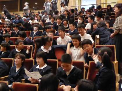 コンサートも開催される立派なホールに緊張気味の子ども達、着席してもウロウロ、ソワソワでした。