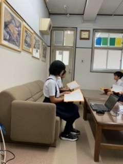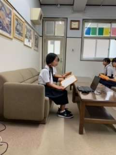 校歌を歌った後、5年生の代表の児童が、2学期への決意を発表しました。代表の児童は、しっかりと発表することができました。