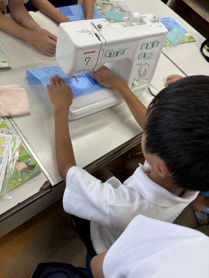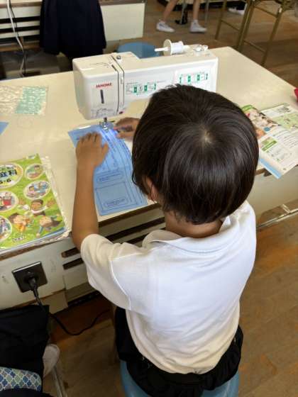 初めて使うミシンに戸惑いながらも、楽しんで学習しています。