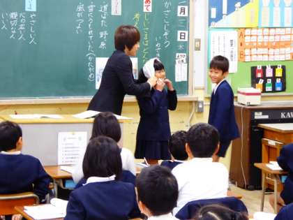 そんな中で、児童にその状況のシュミレーションも(笑)