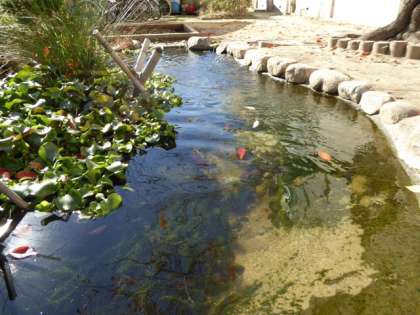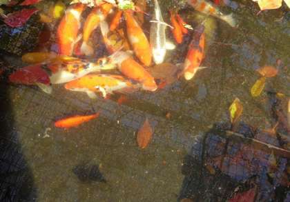 ビオトープも鯉池も真上に桜の木があるだけに、掃除をしてもきりがありません。でも、積もった落ち葉が汚泥化してしまう心配もあり、せっせせっせと地道な作業。おかげで、水の透明度はしっかり保たれています。