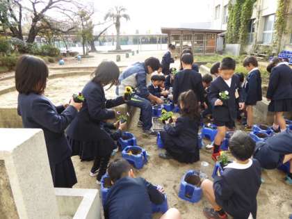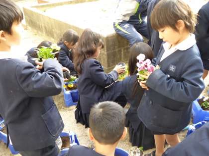 春に一杯花が咲きますようにと願いを込めて、一鉢一鉢大切に植え込みを行っていました。