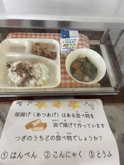 竜田揚げは、子ども達が大好きな献立でおかわりの行列ができていました。