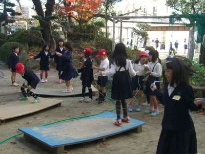 見に行くと なわとび用のジャンプ台の周りににたくさんの子ども達がそれぞれなわとびを頑張っていました。
