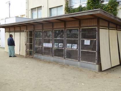 管理作業員さんが「小鳥小屋」に冬対策、全面をベニヤ板で囲ってくれました。これで吹きすさぶ寒風も横なぐりの雨もシャットアウト。