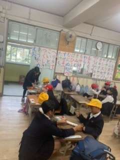 はじめに、お祝い集会の呼びかけの練習をしました。大きな声を出すことを意識して、がんばって練習しました。