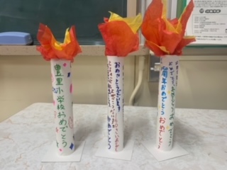 次に、たてわり班の教室で、お祝いのバースデーケーキのろうそく作りをしました。みんなで協力して、お祝いのメッセージ入りのろうそくを作ることができました。