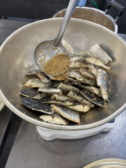 さごしのごまじょうゆかけもやわらかく焼いたさごしにごまじょうゆのタレがかかって好評でした。
