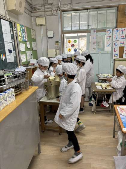 ピリ辛丼は、しょうが、ニンニク、トウバンジャンを香りよく炒め、豚肉とにんじん玉ねぎを炒め砂糖、こしょう、こいくちしょうゆ、赤みそで味付けし、でんぷんでとろみをつけた丼でごはんがすすむ献立でした。どのクラスも完食していました。