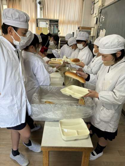 マリネ液の作り方は、玉ねぎをオリーブ油で炒める。炒めた玉ねぎを砂糖、塩、米酢、オリーブ油、ワインで味付けします。今日の給食は、揚げたさけにマリネ液をからませた「さけのマリネ」でした。炒めた玉ねぎがおいしいと大好評でした。